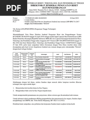 Tindak Lanjut Hasil Review Inspektorat Jenderal Atas Temuan Lhp Bpk Ta 2017 Pdf Pdf
